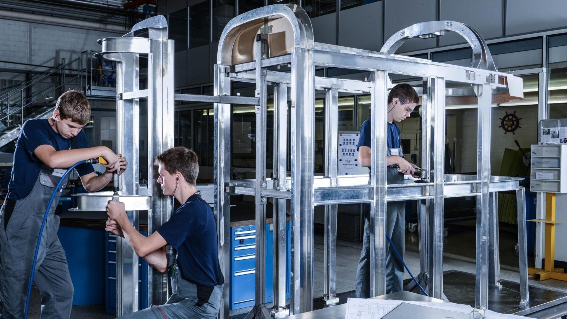 Du bist initiativ und kreativ? Mit uns lernst du, traditionelle Handwerkstechniken und moderne NC-gesteuerte Maschinen miteinander zu verbinden: Anlagen- und Apparatebauer/in EFZ stellen anhand technischer Zeichnungen unterschiedliche Produkte her – vom Flugzeugteil bis zur Produktionsanlage.