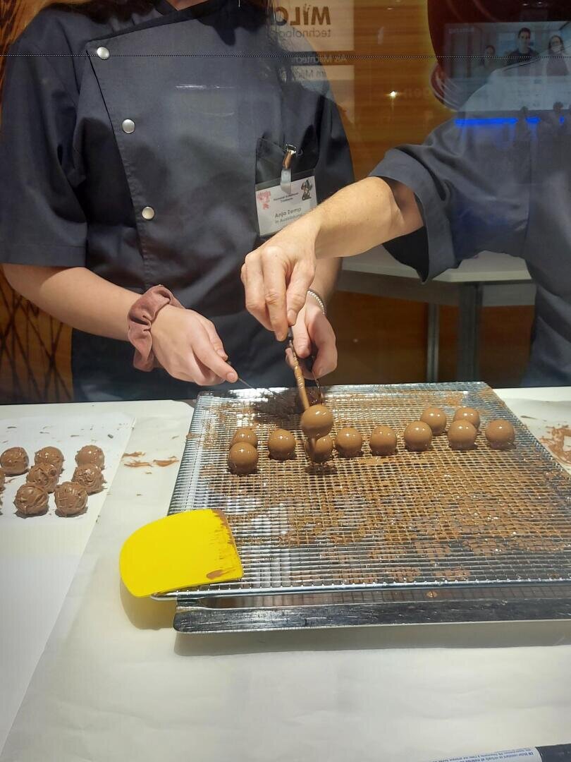 Halle 1: Folge dem Duft von Schokolade und probiere ein frisch trempiertes Praline - ein himmlischer Genuss.