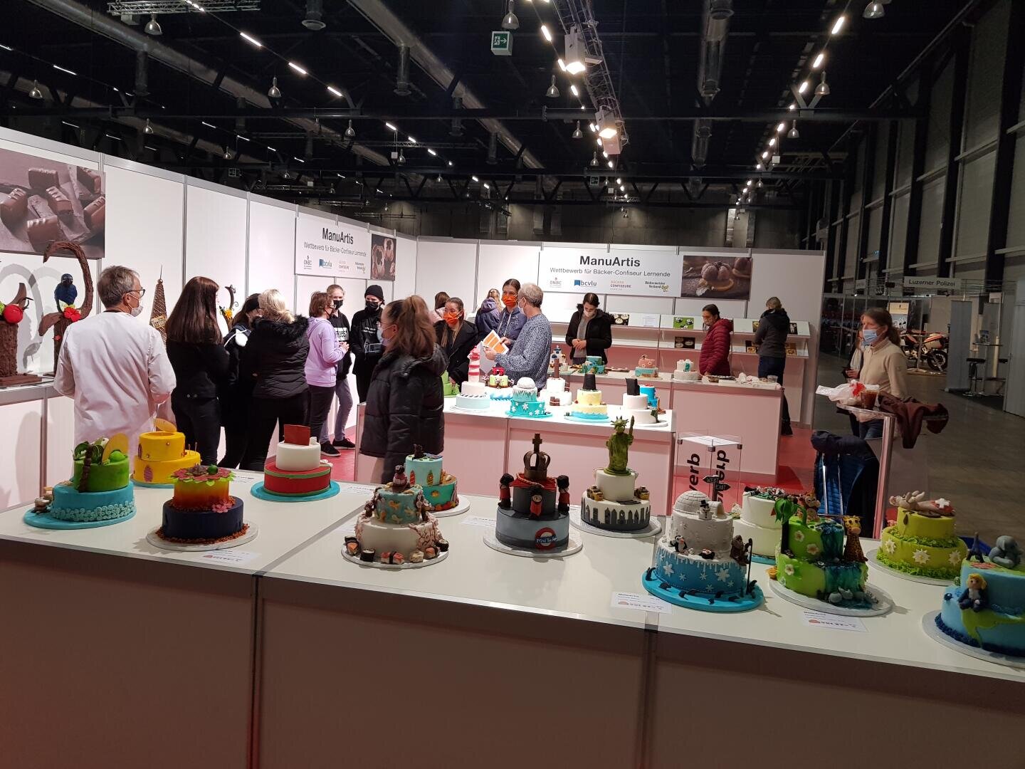 Halle 2: Bestaune die Ausstellungsstücke des Zentralschweizer Lehrlingswettbewerbs ManuArtis – Fantasievolle Spitzbuben, Torten, Gebildebrote, Schokoladen-Schaustücke, schön gestaltete Flächen & Geschenkspäckli, hergestellt von Lernenden 1.-3. Lehrjahr.