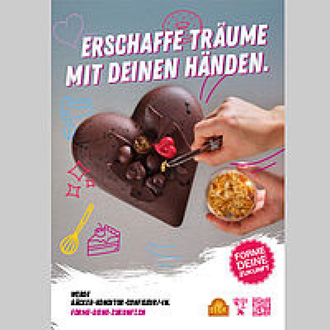 Werde MorgenretterIn, DessertmagierIn oder Quartier-Liebling... dies ist möglich mit einer Ausbildung in einer Bäckerei, Konditorei oder Confiserie. Zebi Halle 1: Folge dem Schoggiduft – wir geben gerne Auskunft zu den Berufen.