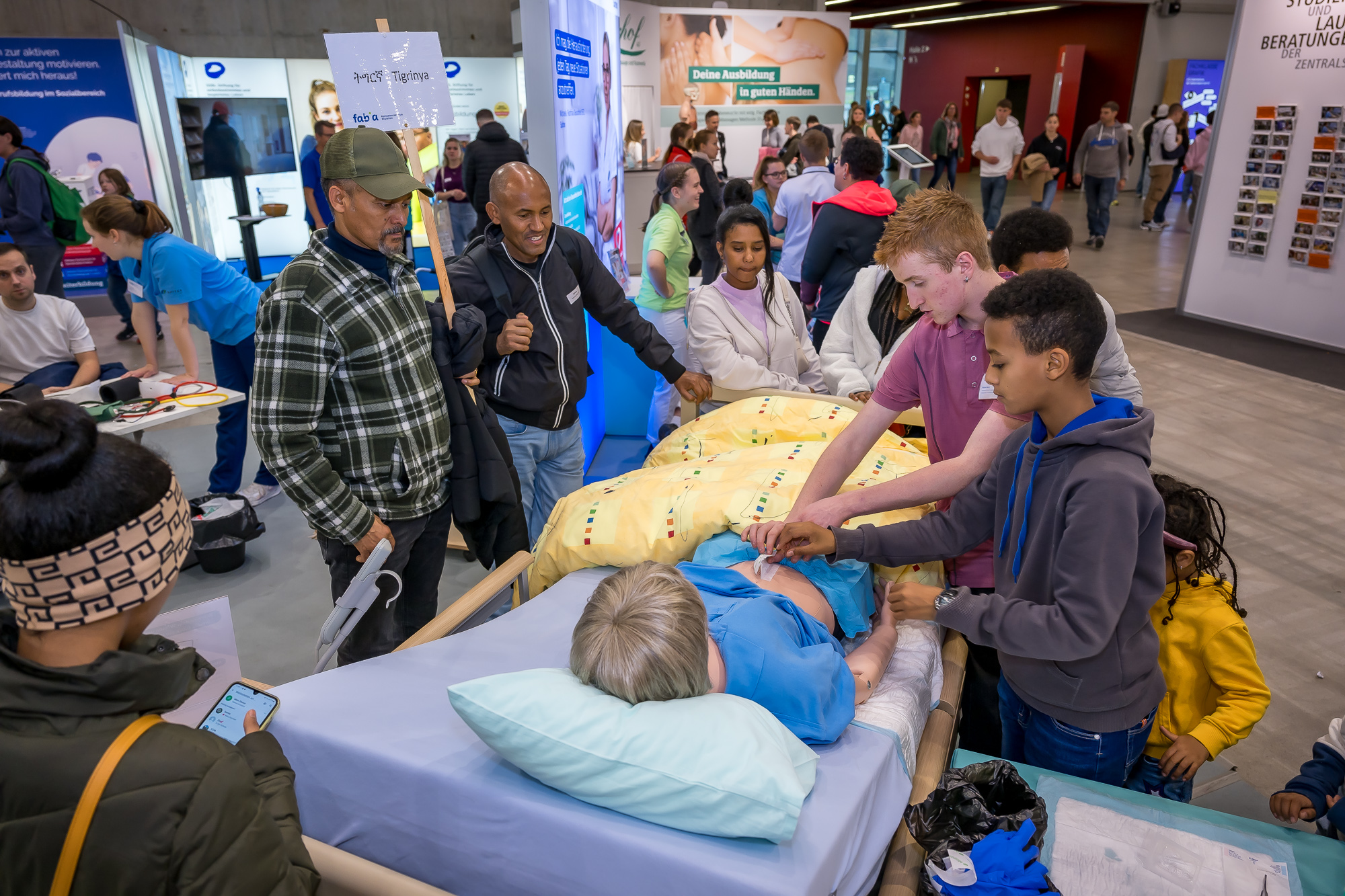 Die Teilnehmenden erhalten einen praktischen Einblick in die Berufswelt, können ihre Fragen direkt an die Fachleute und Berufsprofis richten und profitieren von der Unterstützung erfahrener interkultureller Vermittlerinnen und Vermittler, die für sie übersetzen und Hintergründe erklären.
