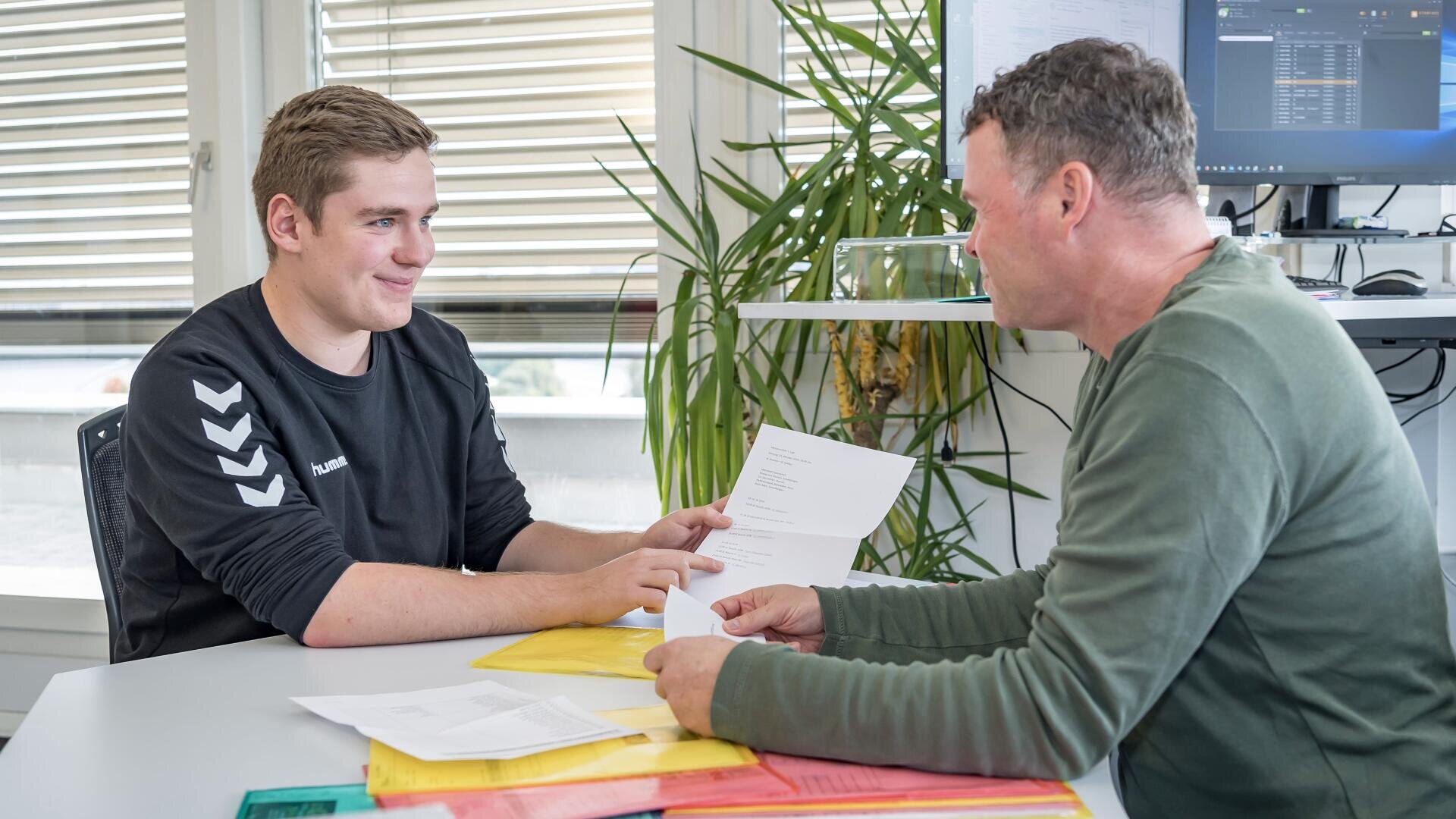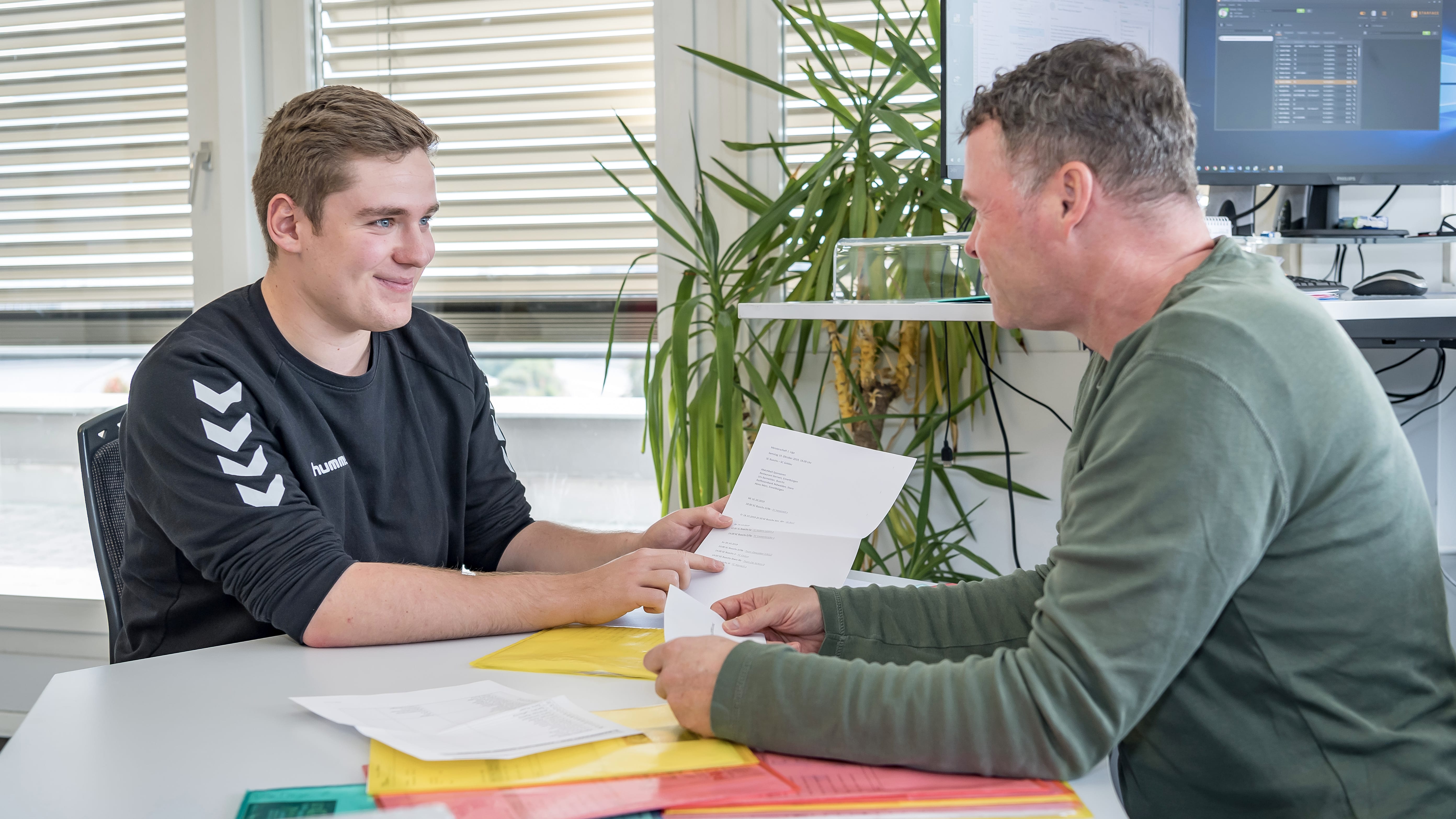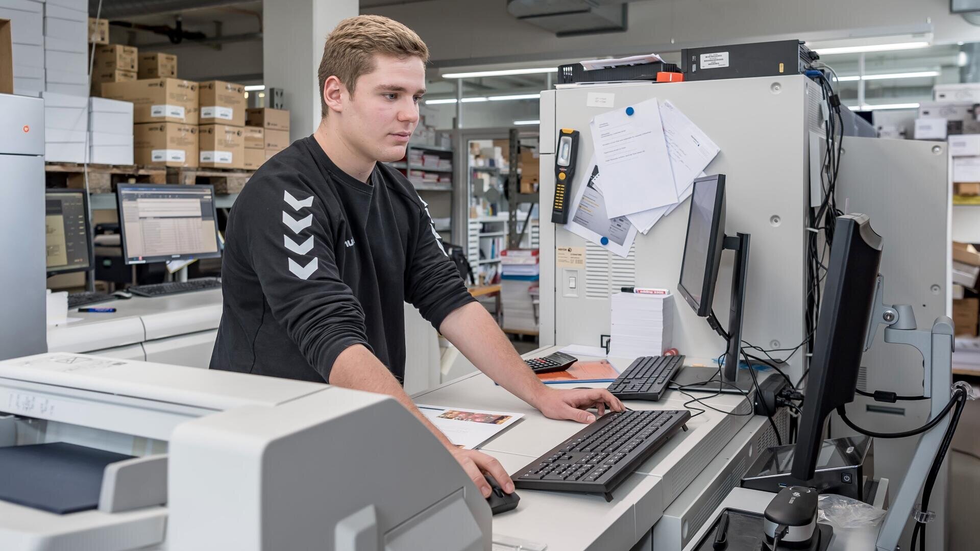 Vor drei Minuten ist André Amstutz ins Grossraumbüro mit prächtiger Aussicht in die Zentralschweizer Bergwelt gekommen und hat seinen Computer hochgefahren. Auf dem schlichten Tisch vor ihm liegen sechs farbige Mäppchen mit Auftragsblättern, daneben steht ein Wochenkalender. Heute Vormittag wird der Polygraf im 4. Lehrjahr bei der Firma Engelberger Druck AG in Stans zunächst am wöchentlich erscheinenden Magazin «Unterwaldner» arbeiten.