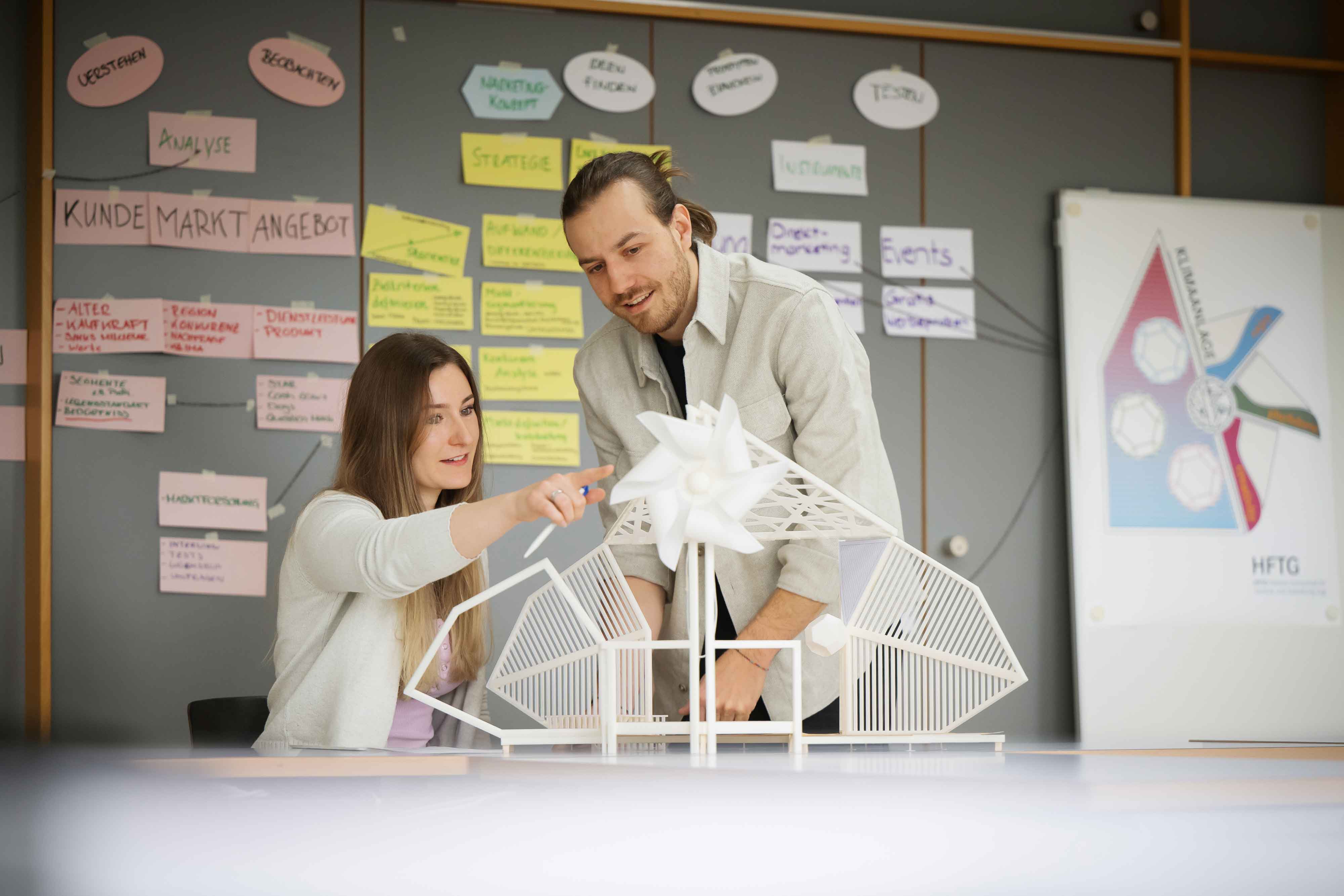 Unser interdisziplinäres Konzept fördert die enge Zusammenarbeit zwischen Fachrichtungen und Praxispartnern. Nach dem Design-Thinking-Ansatz entwickeln die Studierenden Projekte von der Idee bis zur