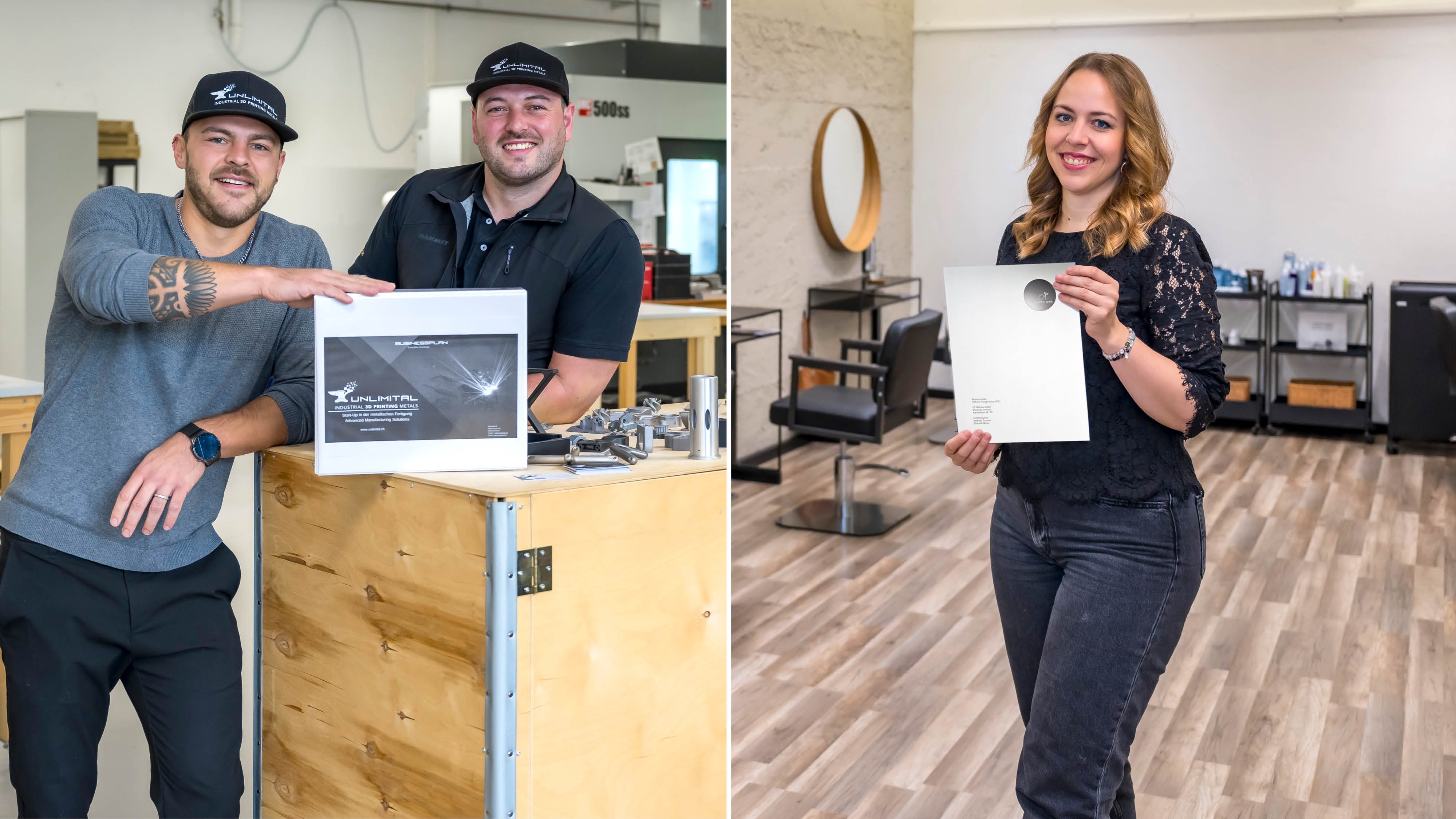 Sie arbeiten in komplett unterschiedlichen Bereichen – Hairstyling und additive Fertigung. Und doch haben Chantale Ambühl, Jonas Hirzel und Marcel Gisler etwas gemeinsam: Die höhere Berufsbildung hat sie motiviert und befähigt, den Schritt in die Selbstständigkeit zu gehen.