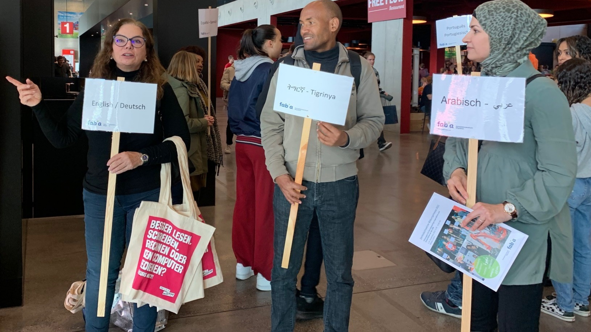 Interkulturelle Vermittlerinnen und Vermittler informieren fremdsprachige oder neu zugezogene Jugendliche und Erwachsene im Rundgang durch die Zebi über das vielfältige Aus- und Weiterbildungsangebot.